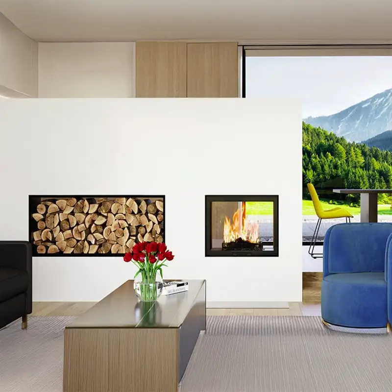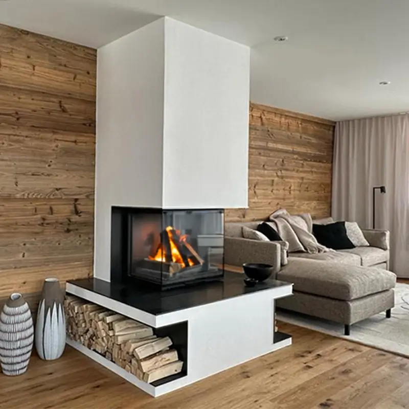 Ruegg peiser er designet for fleksibel integrasjon, med modeller som Violino (180° panoramaglass) eller Cubeo (kubisk form) som passer til minimalistiske eller åpne romløsninger. De støtter innbygging i vegger, hjørner eller som romdelere, med tilpasningsmuligheter for rammer, farger og dørmekanismer (skyve- eller sideåpning).